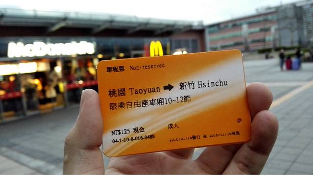 到新竹的自由座车票,和港铁差不多,可以刷银联卡,现金和visa