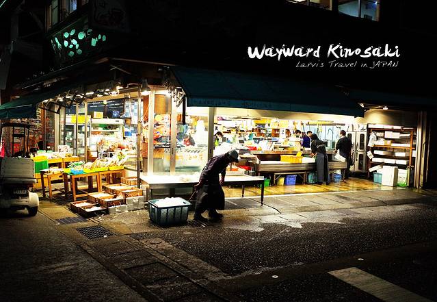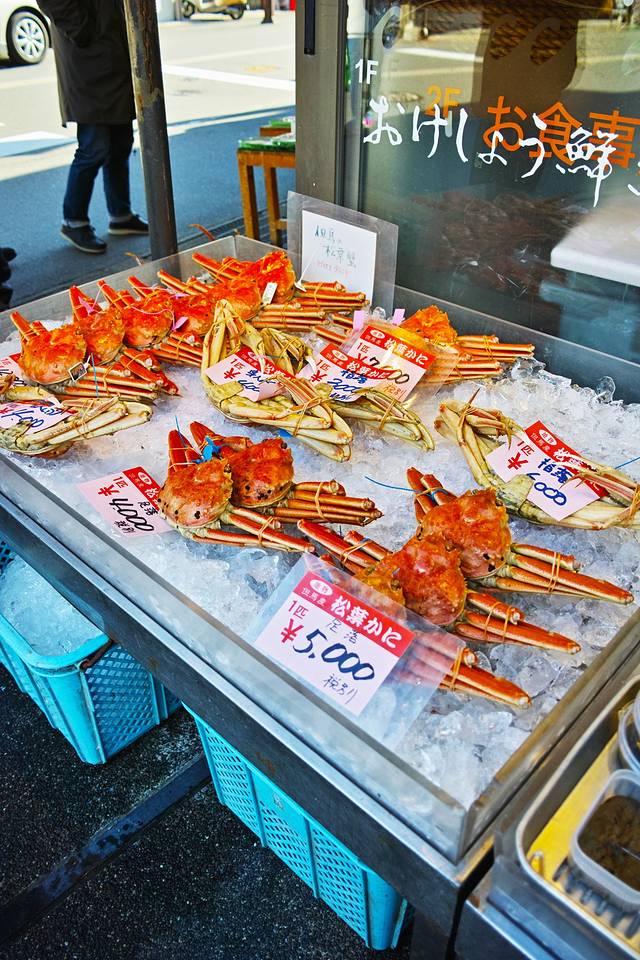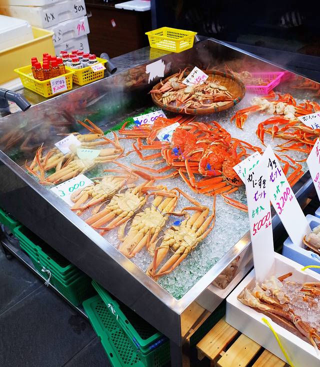 路过快要收摊的海鲜市场,这里的海鲜都是从离城崎只有几公里的日本海里新鲜打捞的,有许多大阪或京都来的客人会在泡完温泉回家之前,带一些最新鲜的海鲜回去