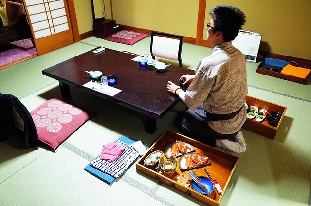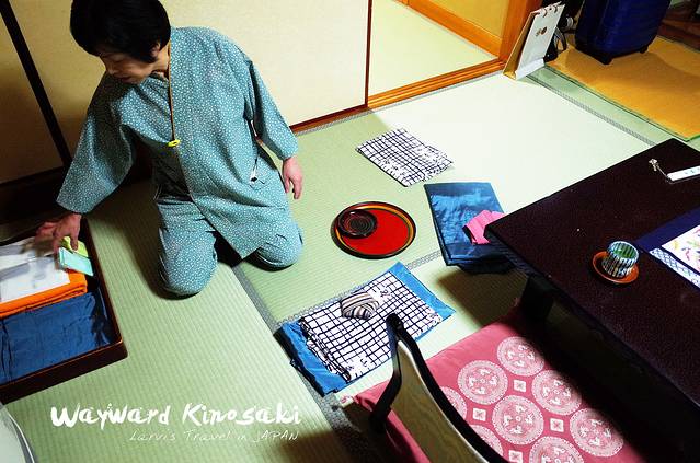 在房间里落座之后,就来了位日本妈妈桑,“扑通”一下就跪在地上,摆放和讲解我们去泡温泉用的和式浴袍装备,之前没接触过这样的理解真心不适应,那么大年纪的长辈啥也不说就跪那了。不过这是他们传统文化的一部分,适应了也就习惯了。