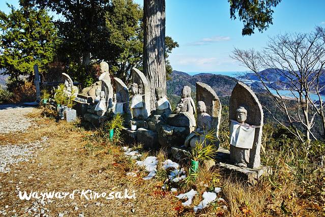 大树底下背对日本海供着一群佛像,而佛像面对着的则是一座坟墓
