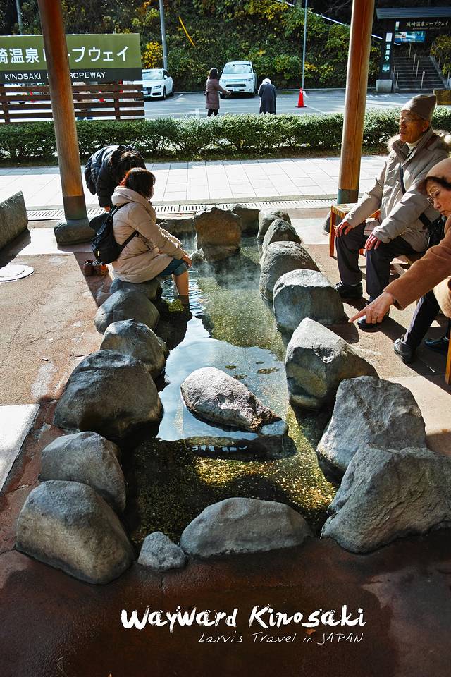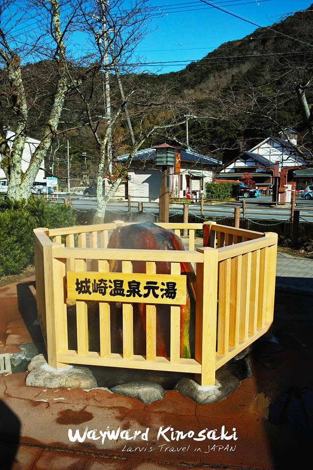 出了鸿之汤,对面索道站山脚下,有城崎温泉的元汤,是温泉的原始水,一直冒着热气