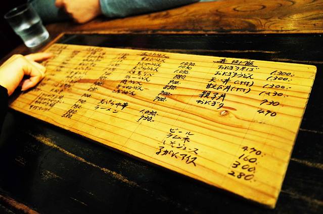 店里的菜单也非常有特色,是直接写在桌面一块木板上的