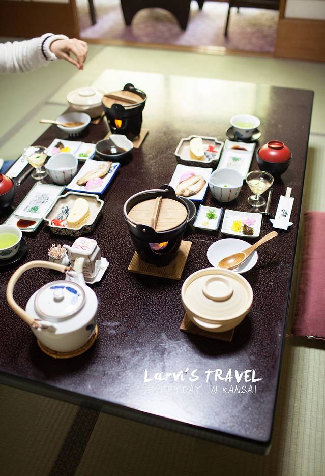 入住的时候旅馆问了我们打算预定什么时候用餐,有几个时间段可以自定,我们选择了6点,刚好饭前泡一个汤,饭后休息会再去泡一个汤。于是安顿停当后,我们先去泡了御所之汤,这个汤比较新,被称为美人汤,据说泡过后会变漂亮,哈哈。