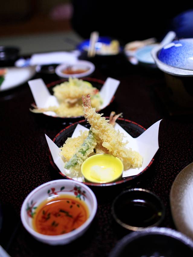 炸的天妇罗,也非常的好吃,我们俩在感叹这一餐真的可以达到米其林餐厅的水准,而且这是送入客房的晚餐,在日式传统客房里品尝美食,感受体验也会更棒