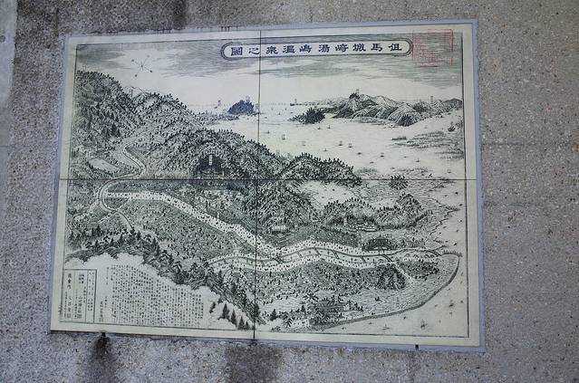 城崎的卡通示意图,可以看到一条小河,一条街,很直白,标的建筑物几乎都是7汤中的X汤