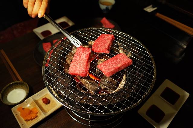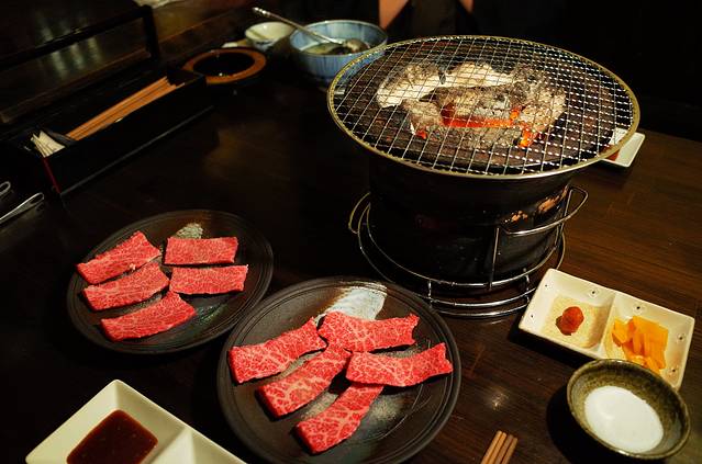 真是功夫不负有心人,黄天不负吃货心,我们在河边一番寻寻觅觅真的被我们找到一家吃但马牛肉的烤肉馆,我们晚上吃了一顿后非常满意,第二天意犹未尽,又去吃了一通,可见但马牛肉的味道是真的非常不错的