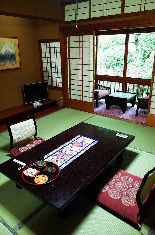 房间很不错,朝着山景,第一次入住日式传统旅馆,一开始我在纳闷,怎么没都没找到床,回想起来我才意识到,刚才在西村屋,也压根没见到床。后来才知道,传统的服务是白天是把床铺收起来,房间就是一间茶室会客室,到了晚上,店家会派人把榻榻米给铺上。