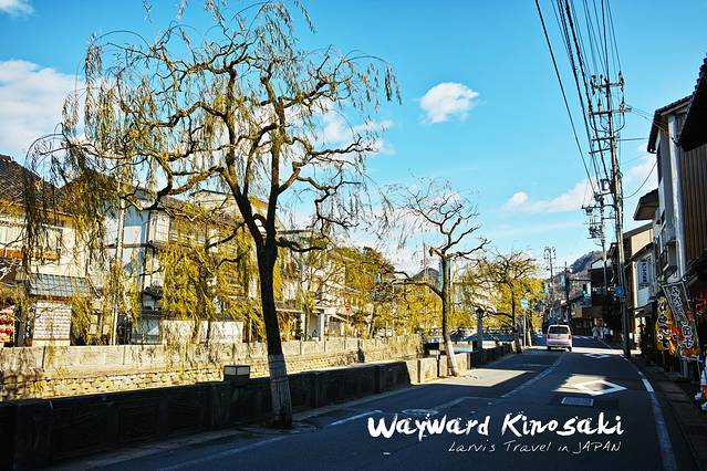 出门后,发现一改昨天的下雪天气,晴好。蓝天白云,太阳照射,非常舒服,让我们体验不同天气下的城崎。