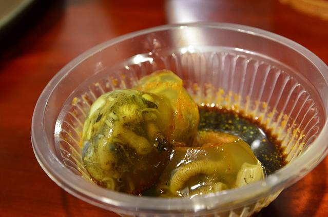 土笋冻,这个超级好吃。后来大林同学告诉我,这是海里的一种虫子,高蛋白质,当时我脑子里的印象除了蛆没有之一
