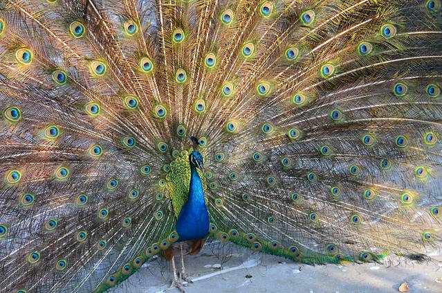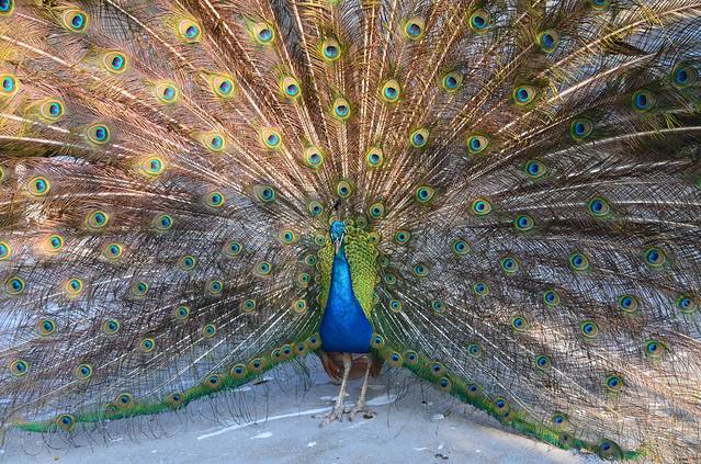 从来没有这样近距离的看孔雀开屏,很美真的很美。