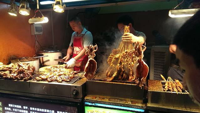 这大鱿鱼20块钱一串,还是那句话,同是沿海城市怎么差别这么大那。