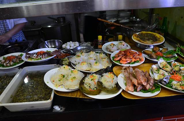 一下船先去找好吃的。