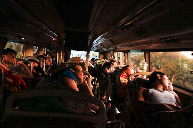 找了家旅行社,从河内到西贡的汽车套票原价42还到38搞定,说好五点半却被告知六点半,结果真正出发已七点多,而且这车空调过于给力,裹毯子都不够!还被骗说车上有厕所和水!所以在越南的时间观念非常不好。