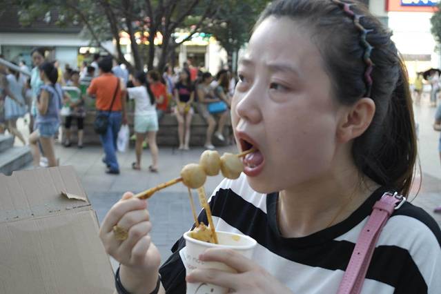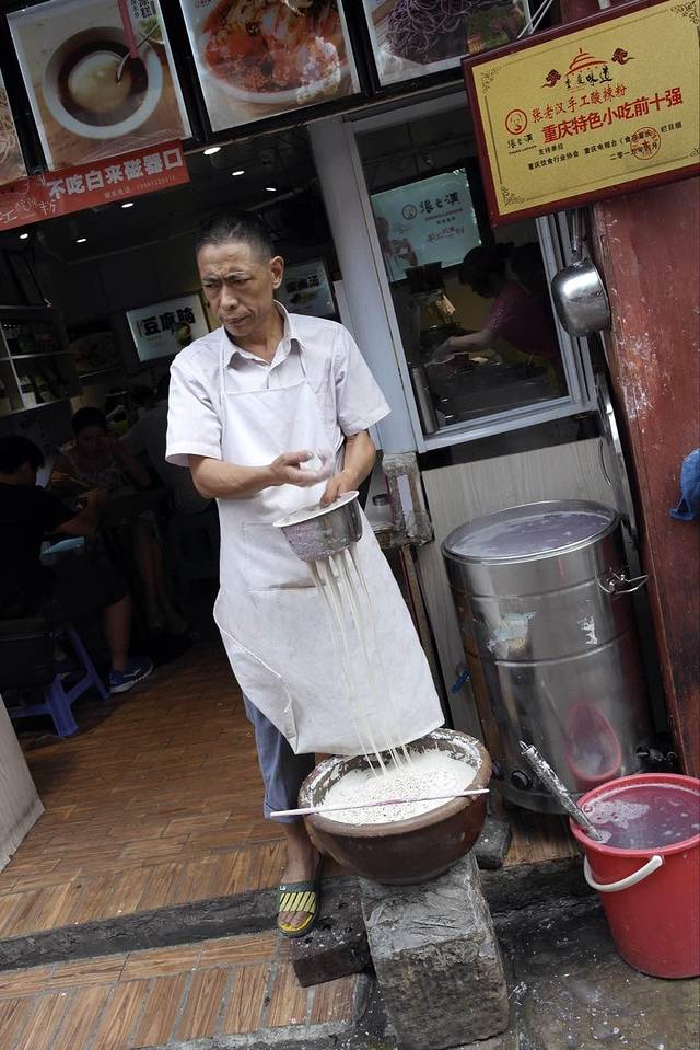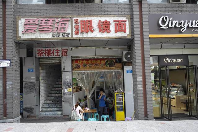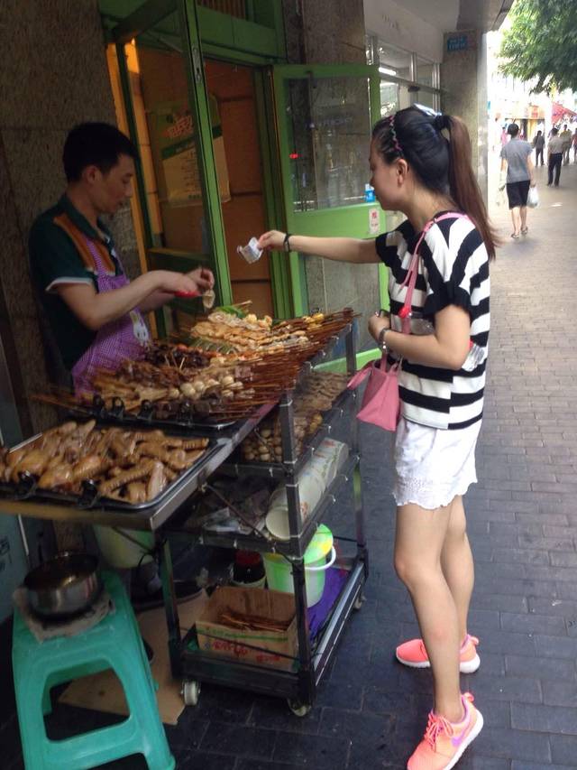 只好随意买两碗酸辣粉 排队人很多 买好直接坐路边吃 地都是油腻的