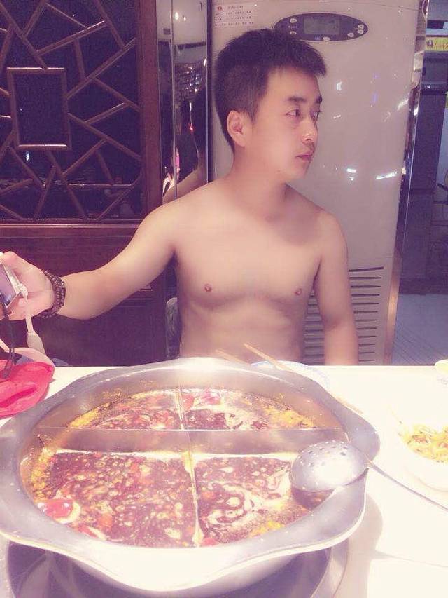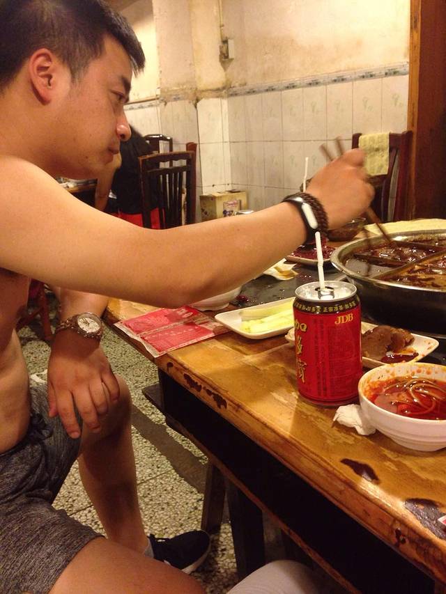 当地人都是光着膀子吃火锅 注意我的腹肌
