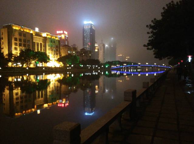 吃过晚饭想再看看这个城市夜晚的美, 坐车来到白鹭洲公园, 听说夏季这里有音乐喷泉和表演, 冬季的公园冷清得很, 连人都看不到几个, 但月光衬托下的树木婆娑依旧是这个城市最耀眼的风景.我彻底爱上了这个城市的树.