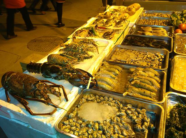 美食街, 各种海鲜大排档, 品种太多, 吃不过来啊