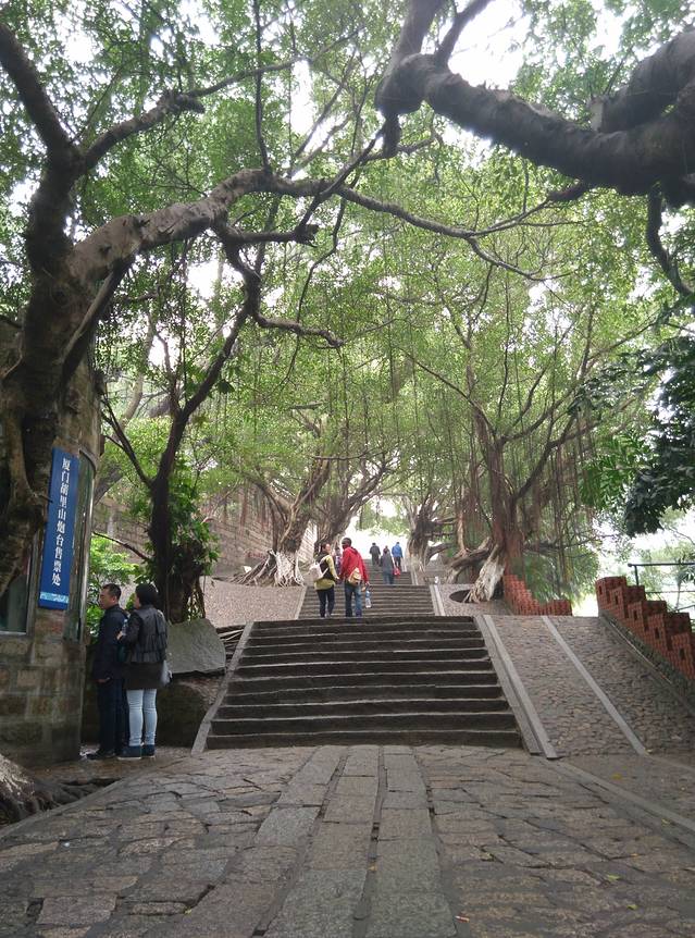 南普陀寺紧临厦门大学,依山傍水的环境, 让我对厦大学生羡慕再羡慕.....游客拜拜佛, 登登高. 寺庙前有志愿者免费发放的香, 十分周道. 上山的时候已经下午4点多, 可游人还是骆驿不绝, 山不算高, 但很多地方的阶梯陡且窄,只许一人通过, 而且都没有扶手栏杆, 人多的时候都屏着呼吸, 生怕出了意外. 来到顶峰腿也是软了, 这天雾气太重, 可惜了山上一片好风景. 山顶有一小吃部, 物价当然比山下的贵许多, 不禁想问,店主是住在山上还是每天爬山上下班呢, 想来都辛苦:)