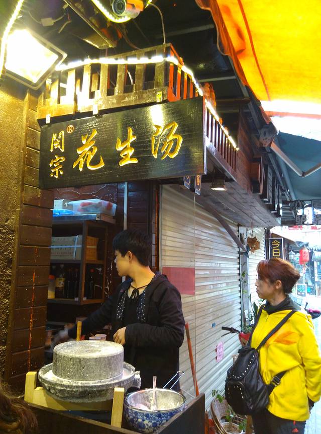 下午时分, 出门再次坐上112东行来到曾厝垵,它常被称为“曾厝垵文创村”, 可给我的第一印象就是又进入了一条步行街,一条布满小吃和旅馆的步行街. 商业化的味道让人很难再驻足品味历史了, 满眼除了美食几乎什么也看不到. 这儿的巷子小而窄, 偶然看到一家店卖花生汤, 因为是现场磨制, 当即决定一试. 果然不错, 大家也不要太好奇,其实就是花生磨成汁后兑水煮熟再加糖.