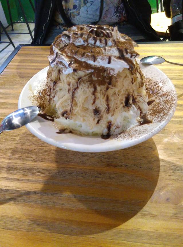 待月光和灯光交织的时候我们又出门了, 小吃街上人声依旧鼎沸, 但小巷中分散的小吃部已经开始打烊, 挑了家海鲜排档馆尝了个大海螺, 我先生试了当地的雪津啤酒; 出了店又看到了传说中的马尔马拉冰淇淋, 土耳其店主实在搞笑:)为了看他的表演特地买了个冰淇淋, 小贵呢.