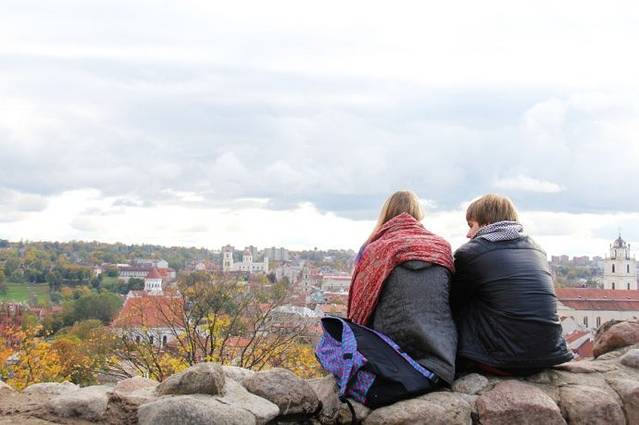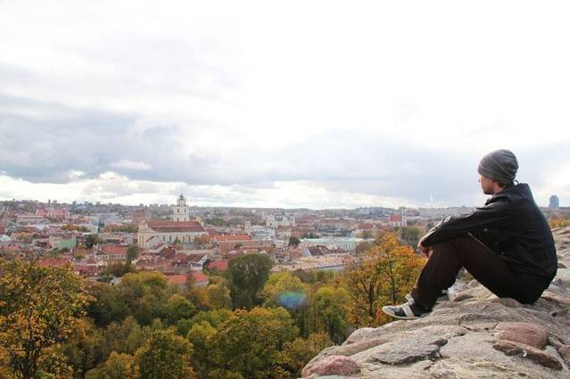 从地平线爬到这座城市的至高点,我只是觉得后脑稍稍发热,下颚有点温湿。48米高的Gediminas Hill,没有给脚步造成什么压力,心情突然像放飞的鸽子一样,呼哧一声掠过维尔纽斯的蓝天,嘴角随即上扬60度。脚下的老城,红彤彤一片红瓦转覆盖着视野,看着舒心得很;倒是右手边两点钟方向的电视塔,跟典雅的老城放在一起显得格格不入。山顶是看日出日落的绝佳地点,它就像一个岛屿,或一座灯塔,环视着四周用森林、教堂、桥梁和房屋集合起来的海洋。我们也不是孤单的,山顶上盘膝而坐的恋人、画家,永远在移动着的旅者和摄影师,都在这一刻成为我们的“同志”——走着同一条上山的路,志在那一种不可言表的自在和悠闲。