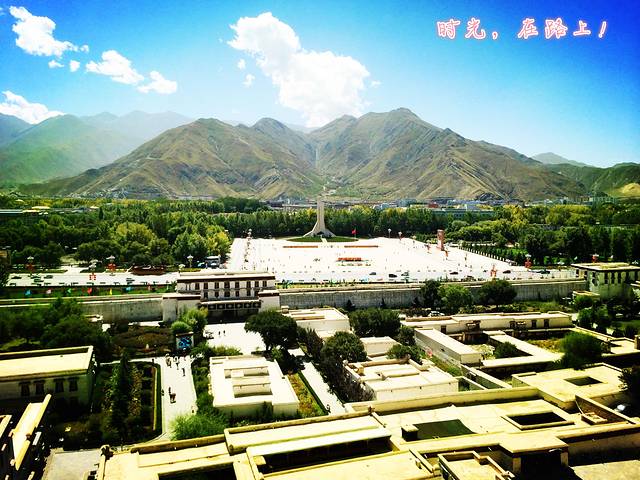 站在白宫顶部平台,缓解着爬台阶缺氧的不适,看着对面的布宫广场在药王山和蓝天白云映衬下,辽阔气派,所有不适都烟消云散!!!
