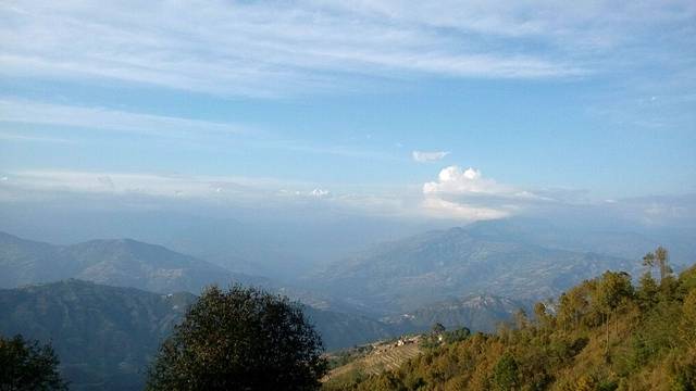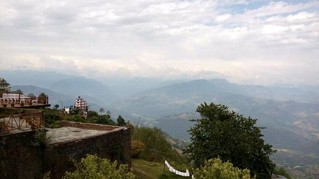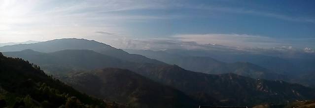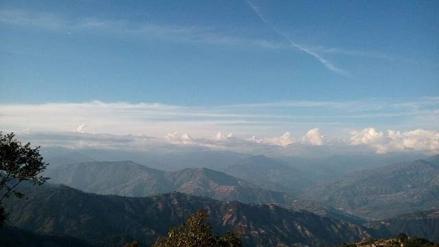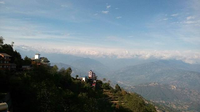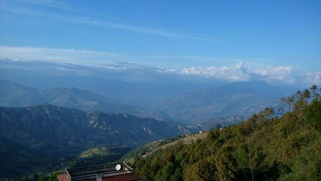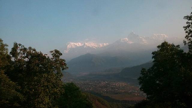奇特旺到纳加阔特,在酒店的阳台上遥望远方的喜马拉雅山脉,一字排开的雪峰,缠绕着白云,时隐时现,壮观而美丽,左前方那座最高的雪峰就是珠穆朗玛峰。