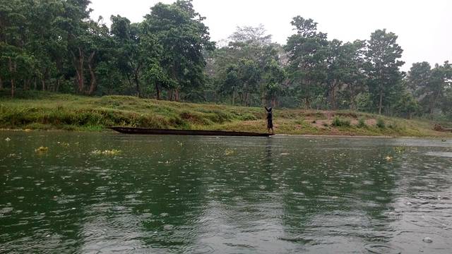 在奇特旺清晨的小雨中,坐独木舟泛丹河上,看河中的鳄鱼,林间的鸟,漫步雨后丛林,邂逅一片盛开的小花……