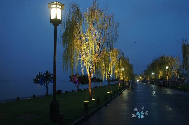 西湖边散步,雨后的清新和凉爽,习习凉风,翩翩柳枝,少了白天游人如织的闹哄哄,变回非常舒服宜人的地方