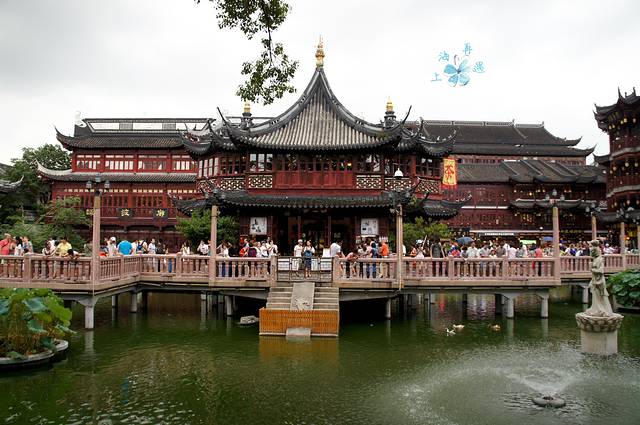 豫园位于城隍庙小吃广场里面。穿过人人人人,抬头望着一座座飞檐走壁的楼阁,人们都是喜气洋洋地吃着各种小笼包生煎包地吃,美食是令人类开心的最有效的催化剂。