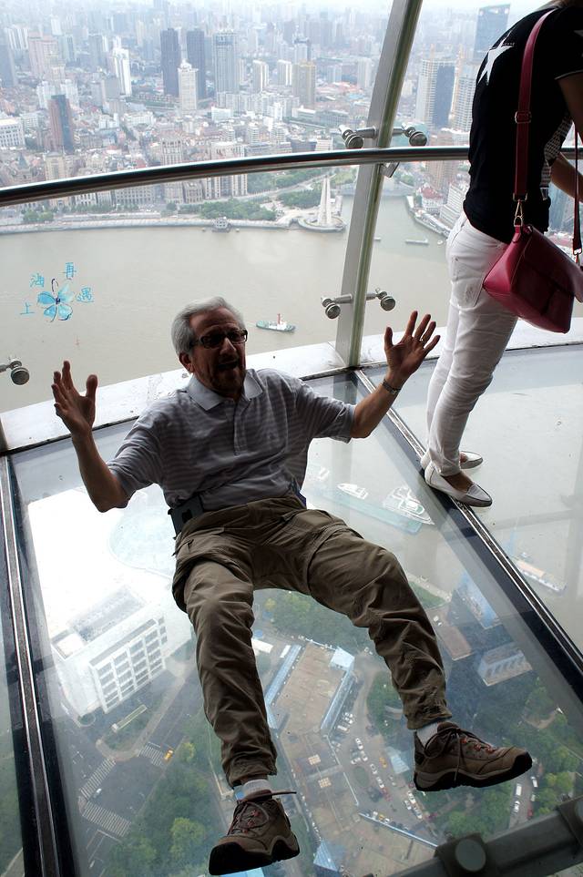 明珠塔此类高塔建筑物上,必然会有玻璃走廊这个震撼心灵的体验。我曾经以为我是不惧怕的,但是原来真的踏上了290米高空的玻璃走廊之后,大脑就控制不了双脚了,很想走到中间去,可是只限于踏出几步,心就秫秫的,没有很多时间调整,就赶往下一个地点了。