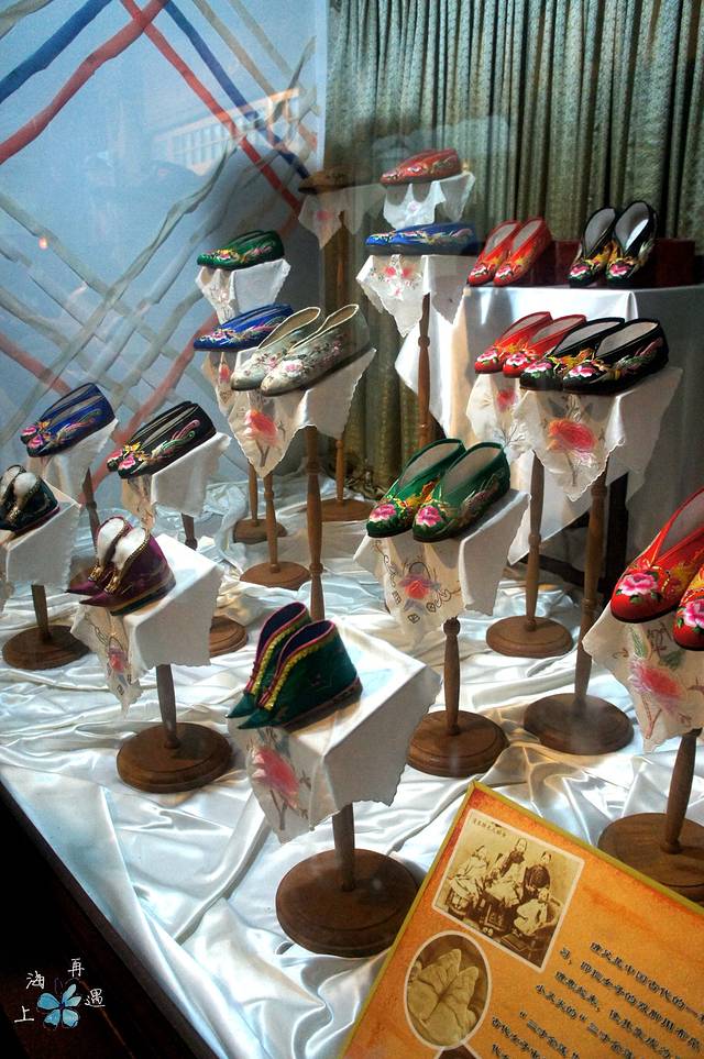 乘坐玻璃电梯,回到0米大厅,上海历史博物馆,展示老上海的交通工具和民生,还有最具旧时代特色的三寸金莲。外国友人对这些古老的故事,特别感兴趣。