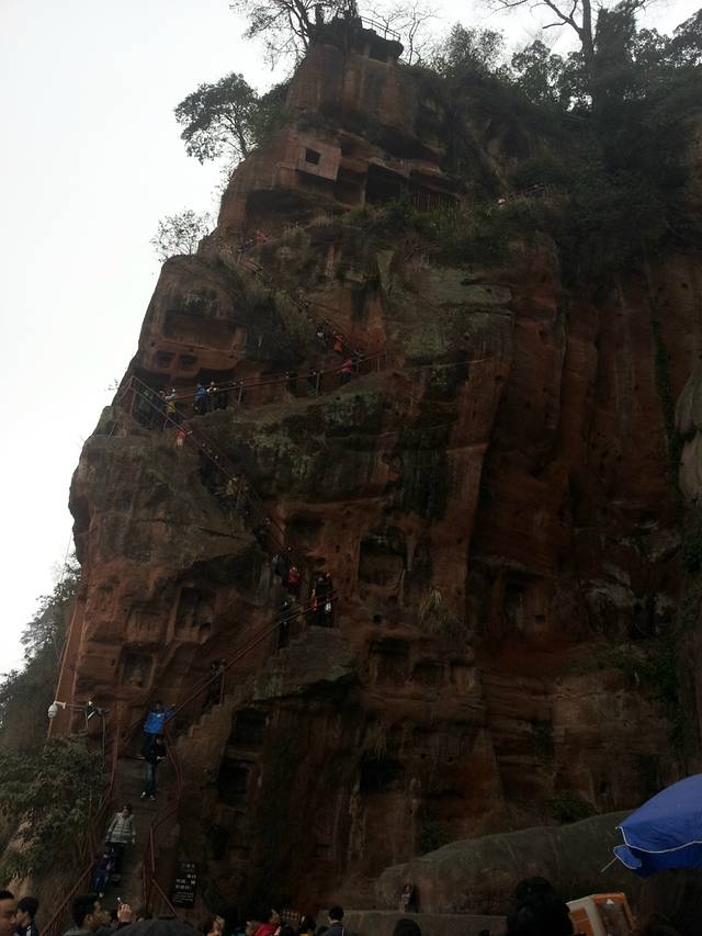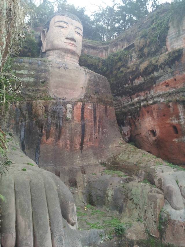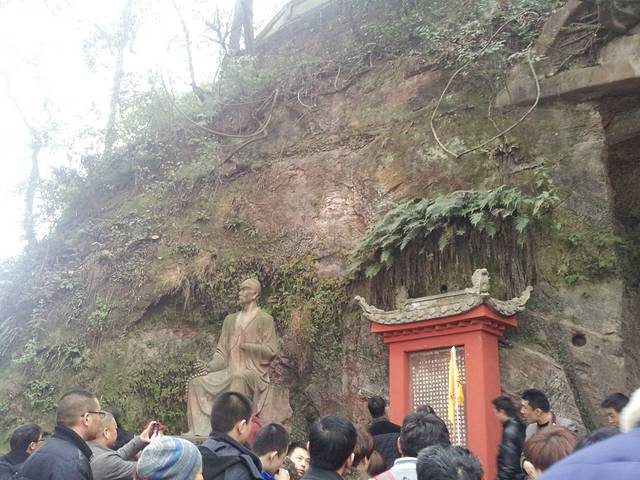 出发到乐山大约有1个多小时路程,车上导游就开始让报附加景点了,一个是熊猫馆,一个是东方佛都,共计280元/人,基本上全车的人都报了,导游是按照有附加景点的行程来安排,如果不报,那么很长时间都要独自待在车上。景区门票90元/人,由于在春节长假期间,景区人非常的多,不过由于我们出发算早,排队的人流不是很长。到乐山后有专门的当地导游负责,从景区门口进去,沿路走上去就到了大佛头部的位置,顺着九曲栈道而下可达大佛的脚部,正对着大渡河、青衣江和岷江三江汇流处,然后从大佛的另一侧顺山洞而上,回到大佛头部平台处,可参观凌云寺等景点。乐山大佛真的非常值得一去,5A景区,世遗,大佛为弥勒佛坐像,通高71米,是中国最大的一尊摩崖石刻造像,十分壮观。因为游人很多,加上跟团游,感觉过程匆匆,有意犹未尽之感。总计游览时间大约需要一上午,出门后在景区门口解决午餐,团餐你懂的,基本吃不进去。