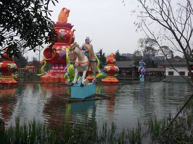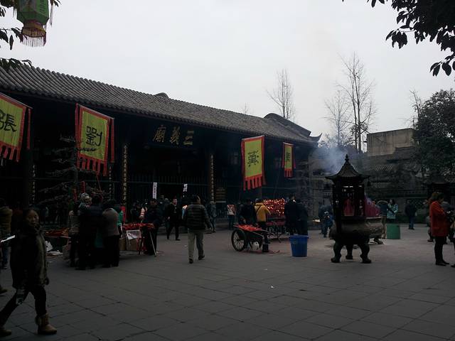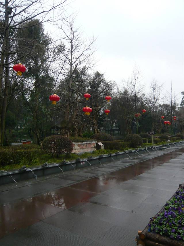金沙门口有通往市内其他景点的旅游直通车,但是因为是按点发车,要等一段时间,所以决定选择公交,从青羊大道北站乘82路至武侯祠站下车。武侯祠门票过年期间半价30元/人,里面有灯会,庙会,热闹的很,人非常多,是最大的三国文化博物馆,有惠陵、汉昭烈庙、武侯祠、三义庙等。红墙绿竹,景色很不错。