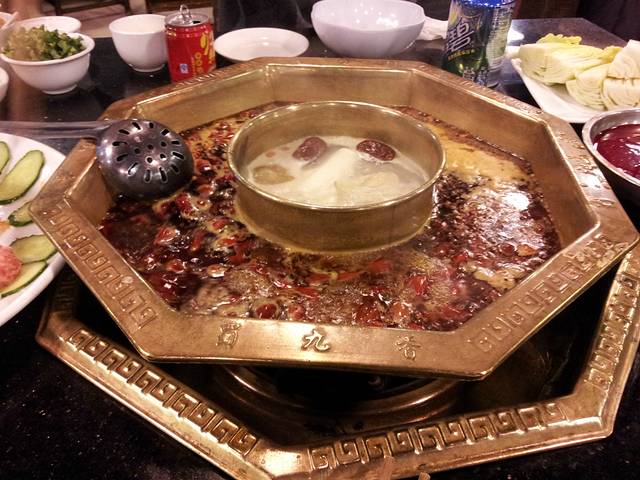 出了锦里不远处正好有家蜀九香,一直想吃一次正宗的四川火锅,真的跟北方火锅好不一样,居然是蘸香油的,北方的火锅都是先来几盘羊肉,这边都是鹅肠、鸭血、黄喉之类的,不过可是真的很辣啊。