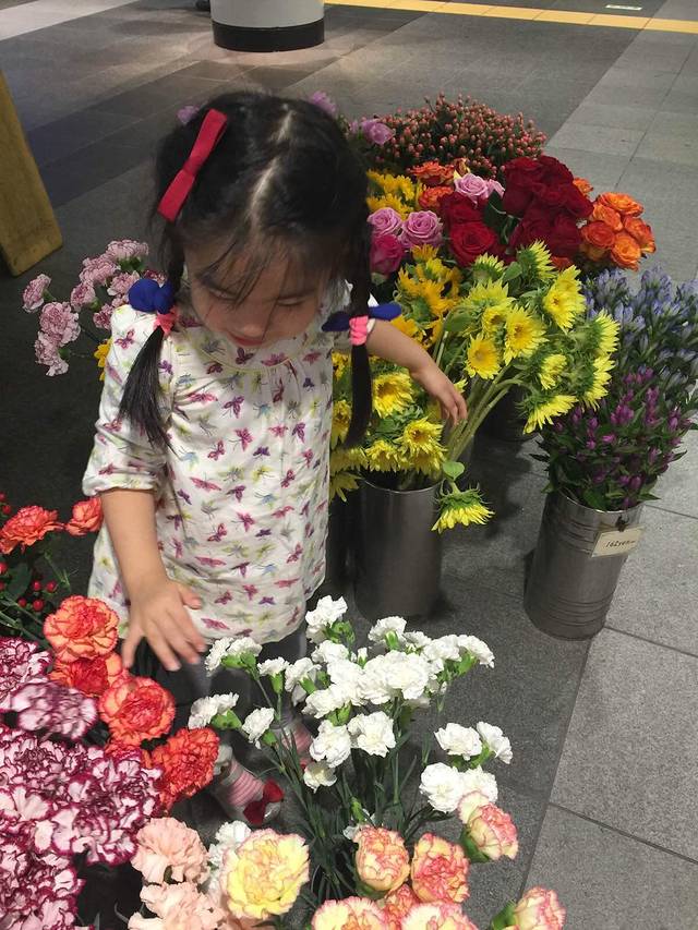 涩谷地铁下的花店,姜妹感觉置身富良野,要求我们拍她