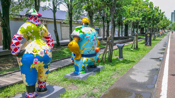 捷运坐到终点才是淡水,下车先找洗手间,小便池前站了一排,身后就是两个大婶开心地聊着天,之前就见识过了,所以这次我很自然