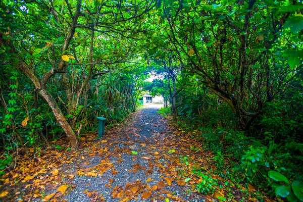 入口处停好车走一段路才到门口,验过证书给胳膊上盖戳才能进去,进去之后还要走过很长一段的丛林走廊