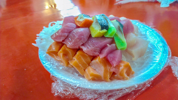 不能只点生鱼片,而且生鱼片最后等很久才给上,已然没了什么胃口,口味很一般,只是量超大,100台币这么一大盘,根本吃不完