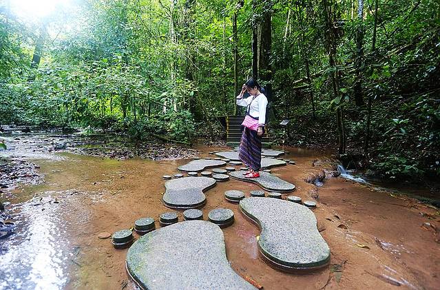 真正走入原始雨林,基本是没有阳光洒向地面的,这里如此的艳阳高照,说明我们还未真正的进入到雨林中。第一个出境的小伙伴是我们可爱的导游晓月,接下来的行程,她也兼做模特。