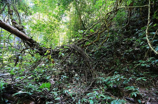 穿行在原始丛林之中,居然很容易感到疲倦,看来平时确实是太缺乏运动了。在路上又遇到了另一棵超大的树,片根深深的扎进泥土当中。