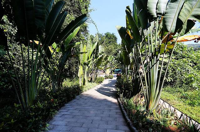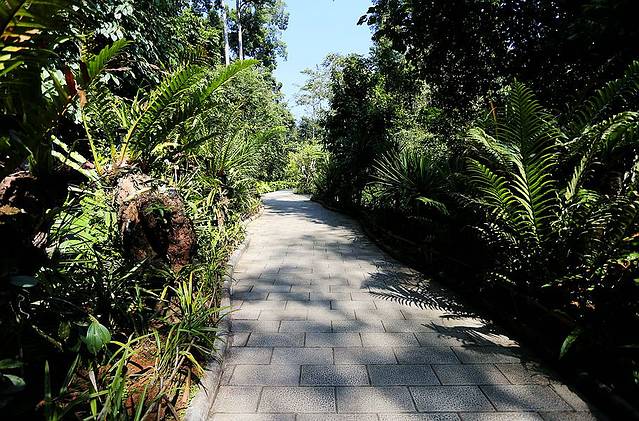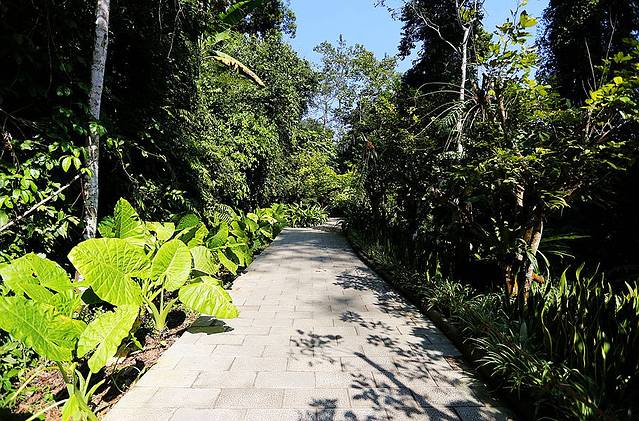 穿过雨林之门,接下来是一段平坦的大道,道路的两旁,则是各种充满热带风情的雨林植物,每一种都散发着勃勃的生机。