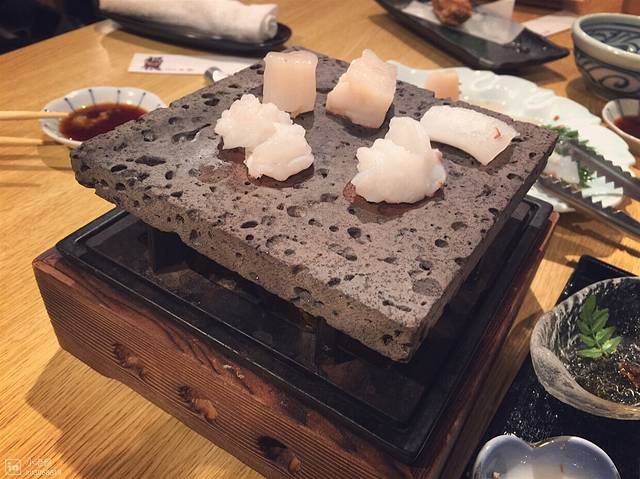 这个第一次吃,海鲜在陶板?上烤