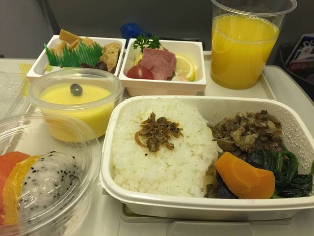 JL航空的飞机餐,好好吃啊!吃饭前我们还剥了一包糖炒栗子,飞机下来胃也涨撑了