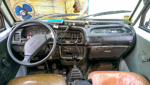 下船继续有工作人员带领,坐上带顶的小卡车,实在是破旧,一路哈着腰颠倒酒店,沿途的汽油味很呛,酒店因为位于S1路程比较远,以至于最后屁股都麻了。
