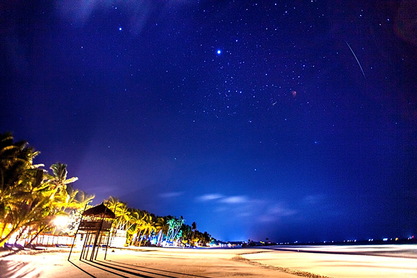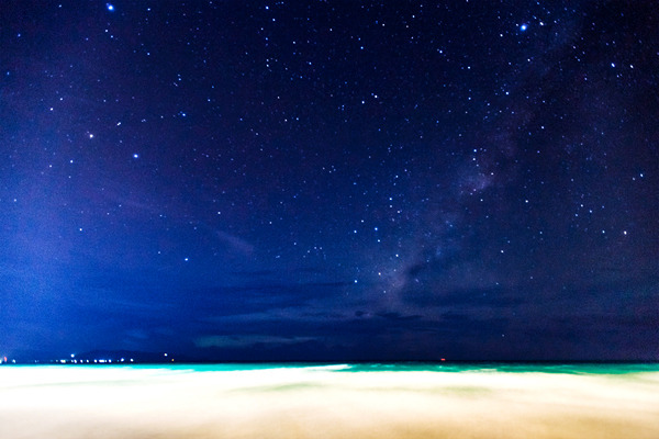 从海岸徒步走回酒店,已经涨潮,S2某些位置的沙滩只剩下2、3米宽,又赶上下雨,在到酒店之前就又晴了,看着满天星斗和隐约可见的银河,决定回去取相机和三脚架。