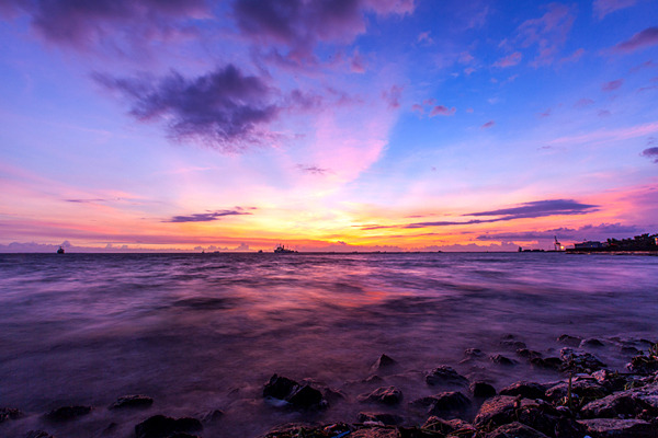 纵然是半夜,海岸的灯光还是依旧,再加上海风,效果拍出来并不好。