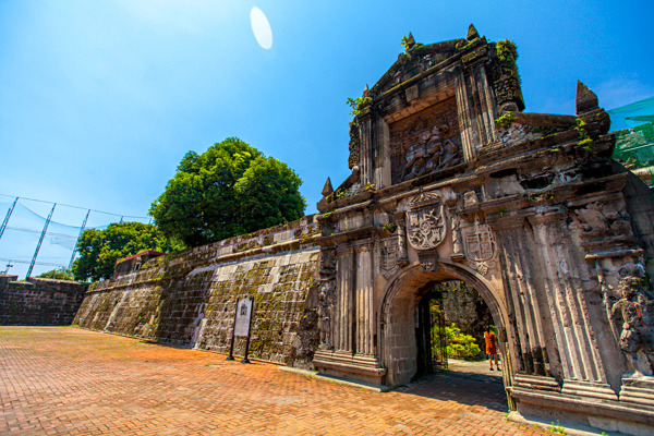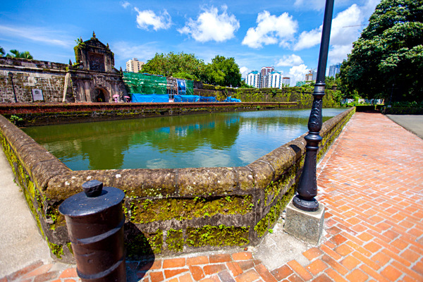 马尼拉大教堂往北100多米就到圣地亚哥堡入口,也是收费的,再往里走一点也有护城河和大门,同样是在修缮。