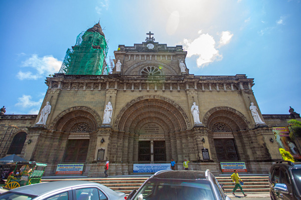 逛完继续向前,离很近就是马尼拉大教堂,从侧面走过时透过窗户看到里边的结构,比圣奥古斯汀要精致很多,满心期待进去参观,结果转到正面写着因修缮关闭,可能这辈子也就没机会再来看了。