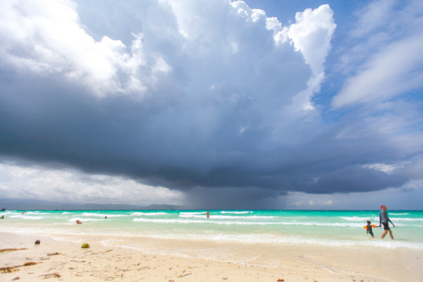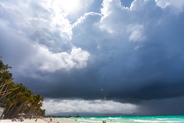 雨季的长滩岛总是这样,眼瞅着天边飘来一片乌云,雨点也随之而来。